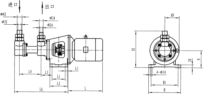 3GF30型法蘭式泵外形及安裝尺寸