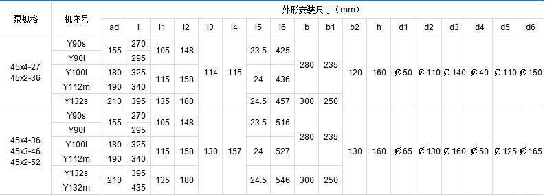 3GBW45,3G45型臥式泵外形及安裝尺寸