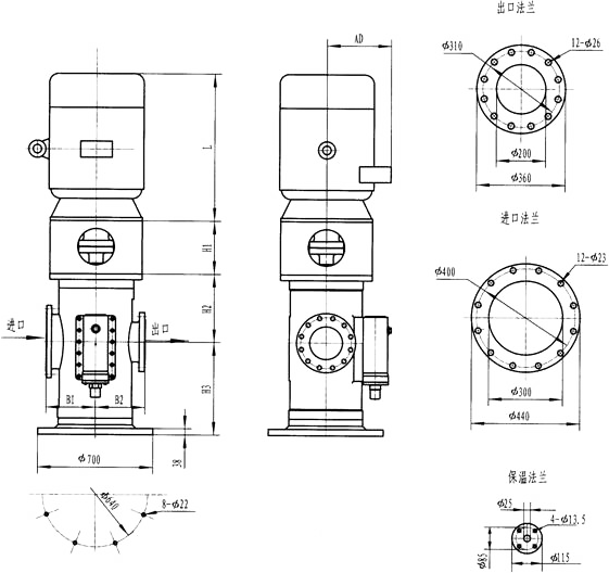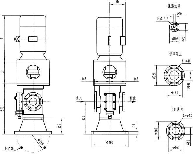 3GLBW180(200),3GL180(200)型立式泵外形及安裝尺寸