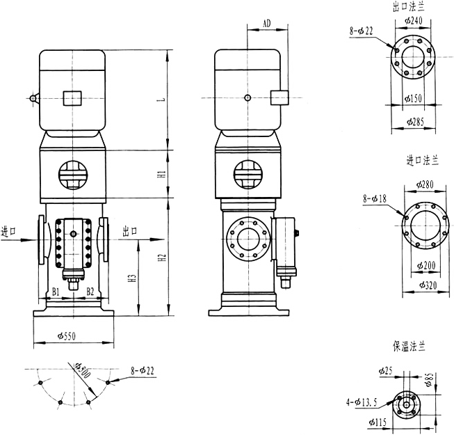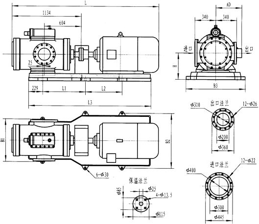 3GR36型法蘭式泵外形及安裝尺寸